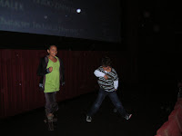 After the movie the kids ran up to the front so they could dance to the music as the credits were rolling. The kids love doing this...except this time Chance was a little to cool for that.